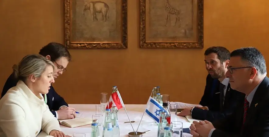 Mélanie Joly discussing the situation in Gaza in Munich. Photo by Mélanie Joly.
